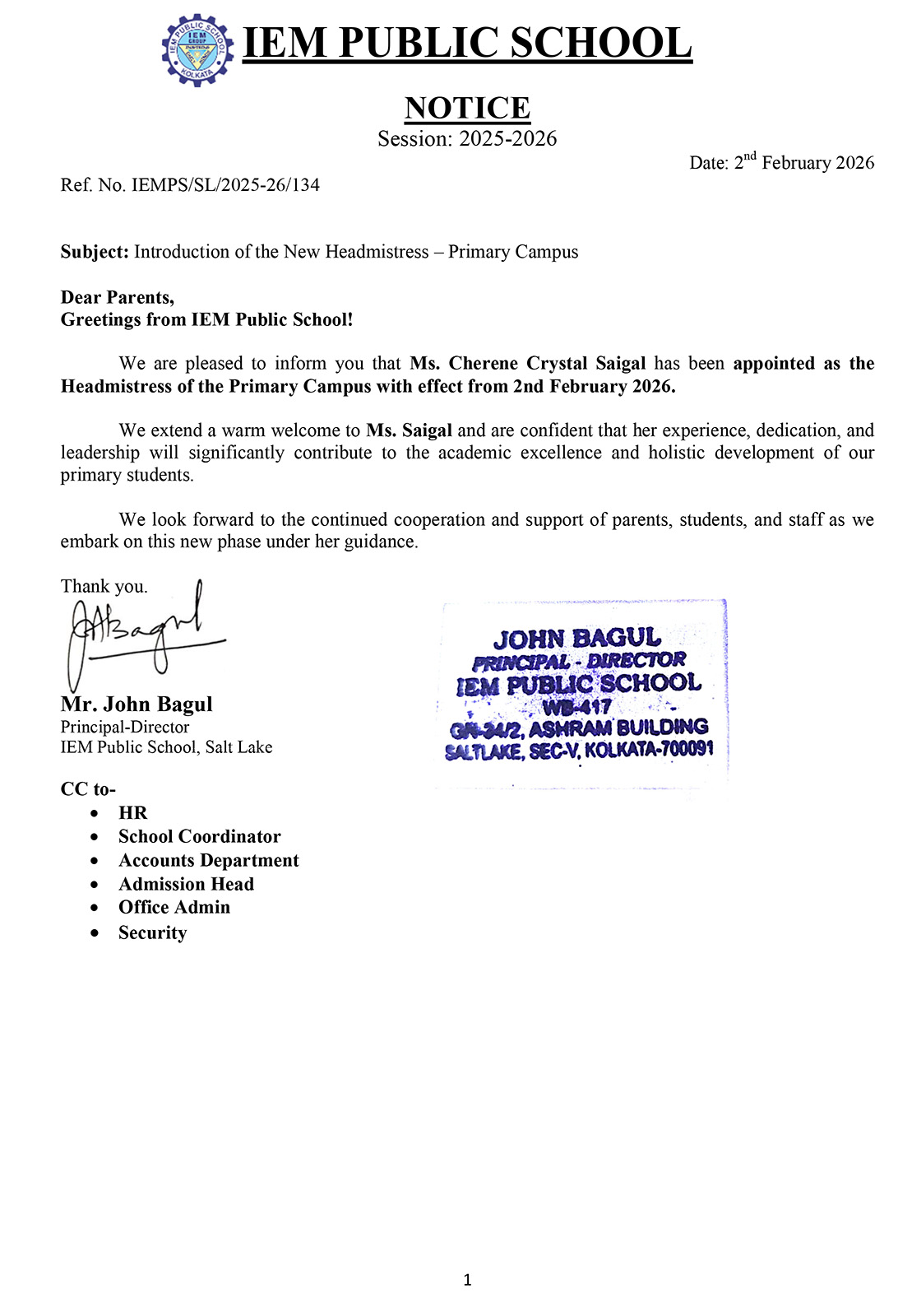 Introduction of New Head Mistress