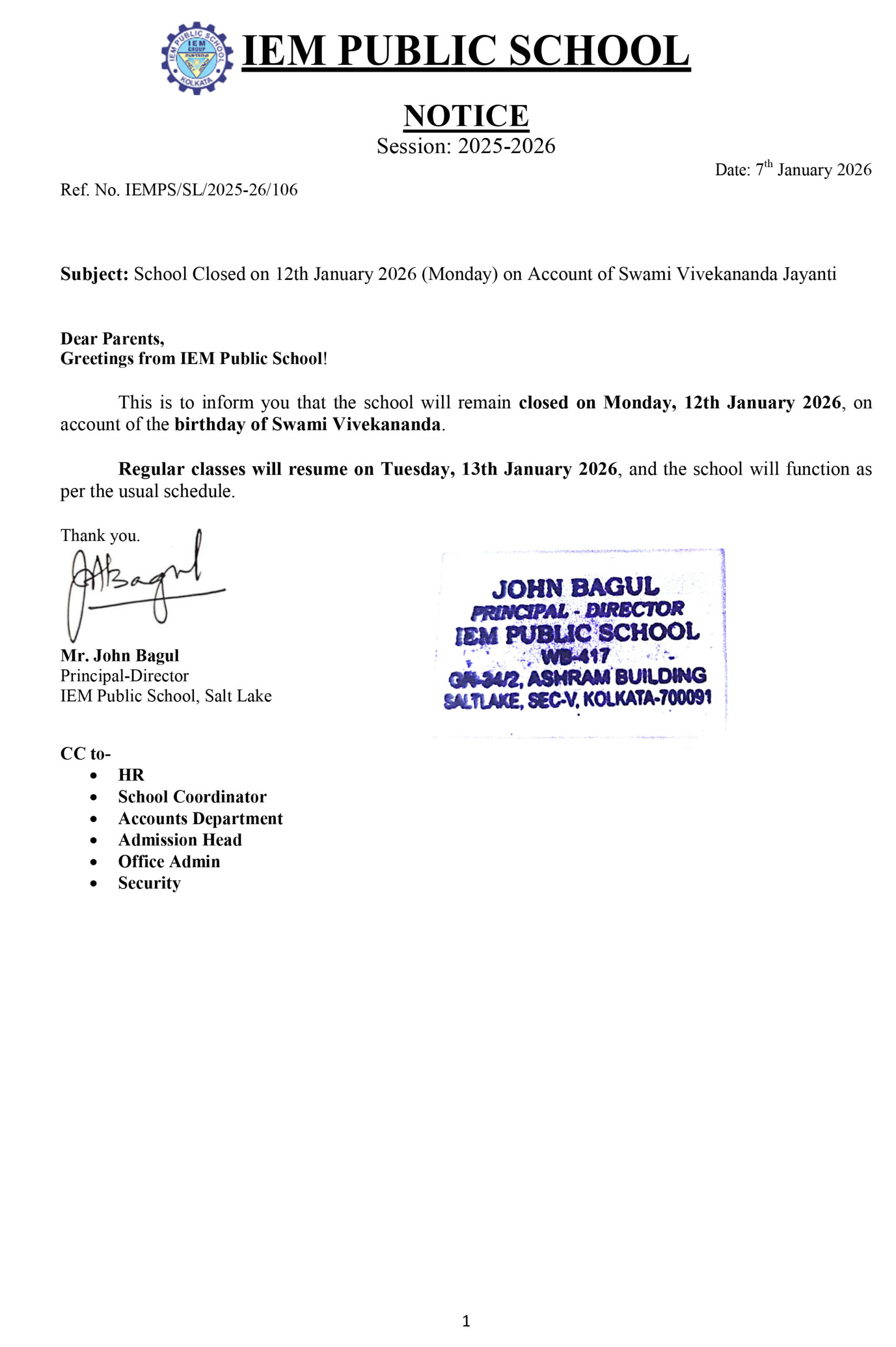2026-01-12 NOTICE regarding Holiday on 12.01.2026 NOTICE regarding Holiday on 12.01.2026 January 12 NOTICE regarding Holiday on 12.01.2026